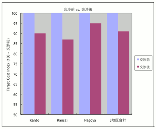 アプローチ: 客観的指標(SPIINDEX)をスポット購買コスト最適化のためのガイドラインとしながら、説得性の高い交渉を行う