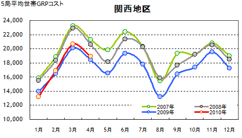 2010年2~4月においては、昨年同時期に対して、関東・関西地区ではやや値上がり(関東6~7%、関西2~3%)、中京地区はほぼ同水準となった。 この傾向や、直近のSPOT市況などを加味すると、今後も同様の推移が予測される。